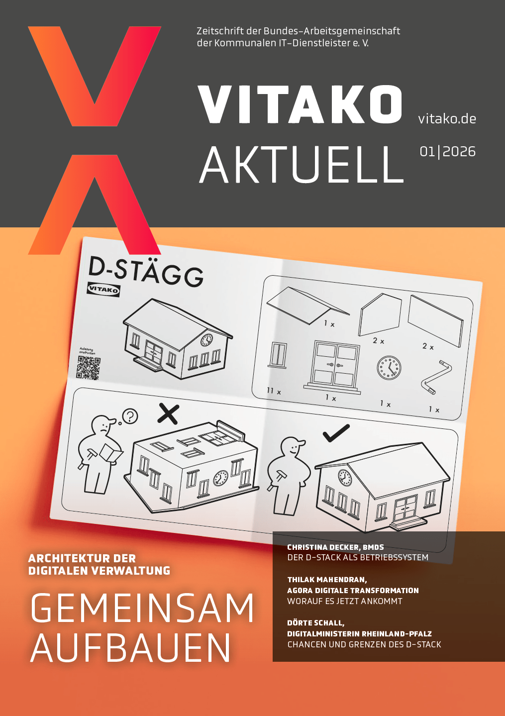 Mit der Ausgabe 01/2026 richtet sich die VITAKO aktuell an alle, die die digitale Verwaltung in Bund, Ländern und Kommunen strategisch gestalten – und stellt den Deutschland-Stack als mögliches „Betriebssystem“ der öffentlichen IT-Infrastruktur in den Mittelpunkt. Die Ausgabe beleuchtet Chancen, Risiken und praktische Anforderungen des Vorhabens und zeigt, welche Weichen jetzt gestellt werden müssen, damit der Stack in den Kommunen tatsächlich ankommt.